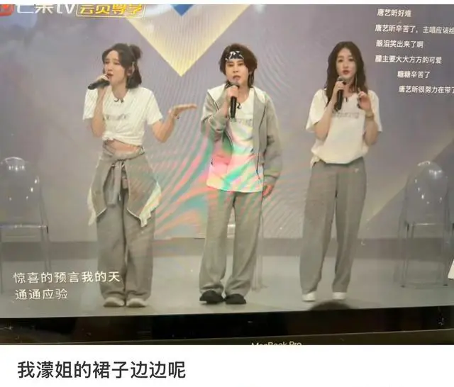 更离谱的是她剪蕾丝。节目组想让她扮甜妹,她倒好,剪刀一上,白花花花边秒变碎布,边剪边嘟囔“这玩意儿耽误我出拳”。李小冉和唐艺昕在旁边瞳孔地震,估计内心 OS:姐姐,我们还在镜头里啊!这一幕比舞台还炸,弹幕齐刷“濛主这是把女团当短道速滑,直接抢道”。